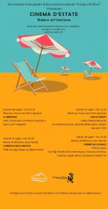 Il Comune di Minturno non possiede un cinema né un’arena estiva da diversi decenni. Parte da questa mancanza la rassegna cinematografica estiva “Ridere all’italiana”, dedicata alla commedia e ai film che hanno fatto la storia del nostro cinema. L’evento, con il patrocinio del Comune di Minturno, è organizzato dalle associazioni Emmequadro e Il Sogno di Ulisse, che hanno deciso di unire gli sforzi al fine di dare a cittadini e turisti una serie di appuntamenti culturali di qualità.