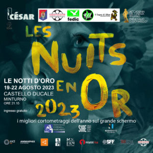 Arriva a Minturno «Le Notti d’Oro», evento cinematografico internazionale promosso dall’Accademia del Cinema Francese dei César e dall’Accademia del Cinema Italiano Premi David di Donatello, in collaborazione con Visioni Corte International Short Film Festival e il Comune di Minturno, che presentano i cortometraggi di fiction, documentario e animazione vincitori dei più prestigiosi premi, tra cui i César, Oscar, Bafta, Goya, Magritte e David di Donatello. Le proiezioni, ad ingresso libero e fino a esaurimento posti, si terranno presso il Castello Ducale di Minturno dal 19 al 22 Agosto, ore 21.15.